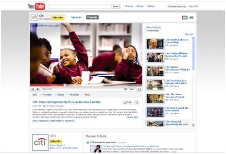 למשל, במשך שנים יוצרת החברה סרטוני הסברה אודות הפרויקטים החברתיים (כגון פיתוח כלכלי של קהילות מוחלשות) ואודות פעילויות התנדבות. ערוץ citi ביוטיוב מאפשר סוף סוף להציג את הסרטונים הללו לציבור הרחב.
