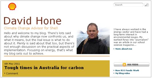 למשל, בזמן קיומה של ועידת קופנהאגן, השיקה החברה (שהיתה בין חברות האנרגיה הראשונות שהכירו בפומבי בבעית ההתחממות הגלובלית) בלוג בנושא שינוי האקלים. את הבלוג מנהל היועץ של Shell בנושא שינוי אקלים. הבלוג עוסק במדיניות החברה בנושא זה, ובסוגיות רלוונטיות.